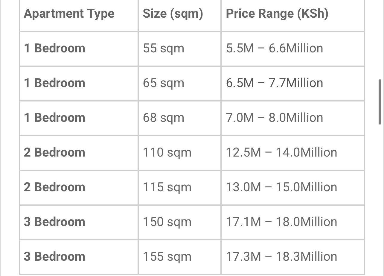 • 65 sqm — KSh 6.5 – 7.7M