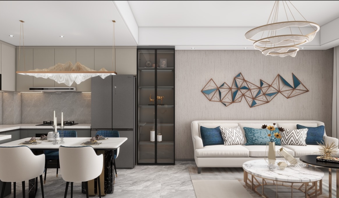 Modern Living Room with Nice fitting of TV wall